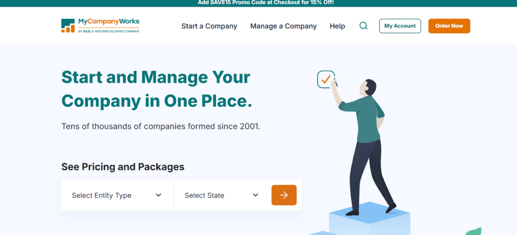 MyCompanyWorks delivers a straightforward LLC formation service, which includes several key features without extra fees. Its clear and user-friendly website provides plain-language instructions and educational resources for founders.